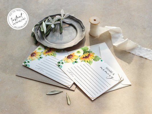 Celebration Of Life Sunflower Share a Memory Funeral Sign and Share a Memory Card Template Y1