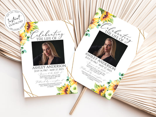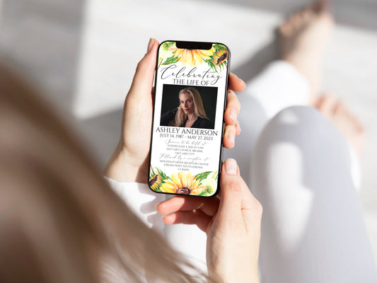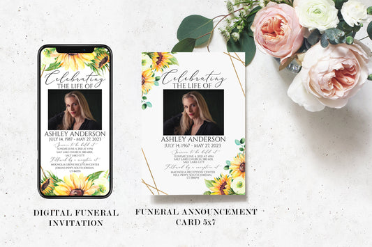 Celebration of life Sunflower Digital Funeral Invitation Template Y1