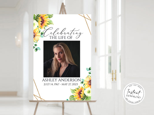 Celebration Of Life Sunflower Funeral Welcome Sign Template Y1