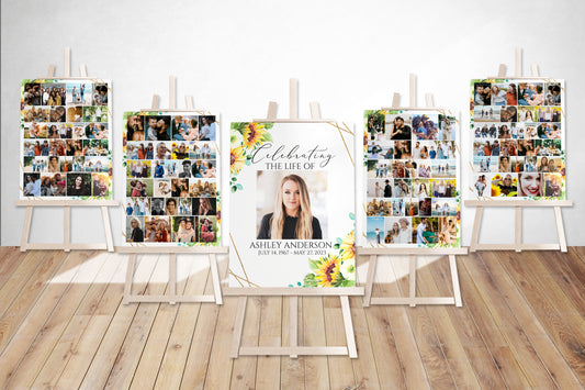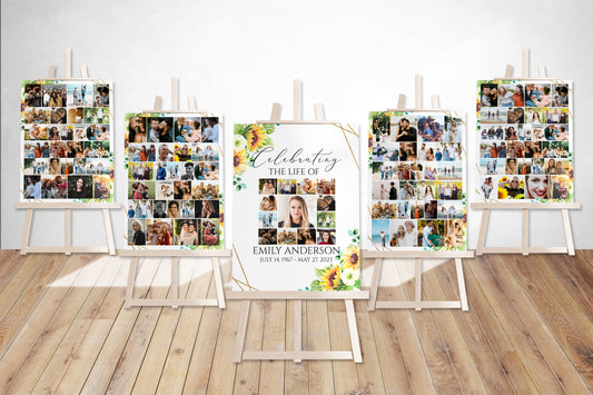 Celebration Of Life Sunflower 5 Photo Collage Funeral Welcome Sign Set Templates Y1