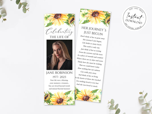 Celebration of Life Sunflower Funeral Bookmark Template Y1