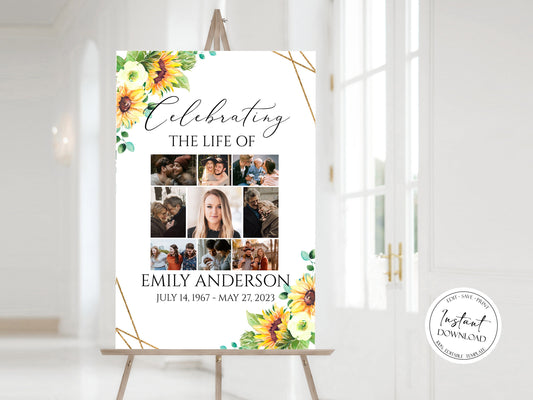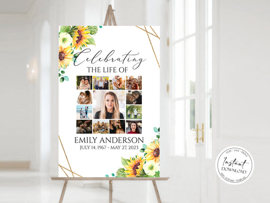 Celebration Of Life Sunflower Photo Collage Funeral Welcome Sign Template Y1