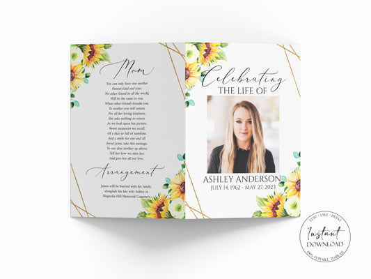 8 Page Sunflower Celebration of Life Funeral Program Template Y1
