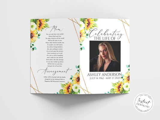 Celebration of Life Sunflower Funeral Program Template Y1