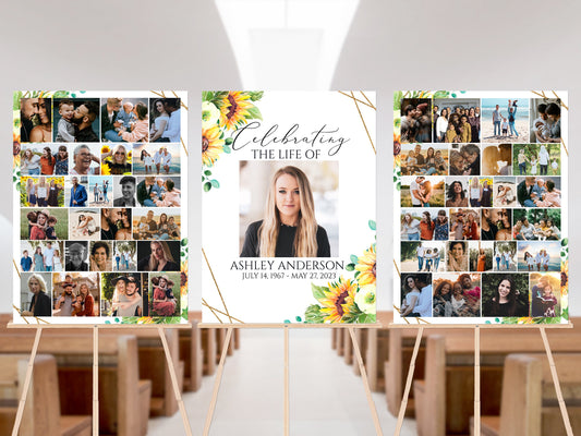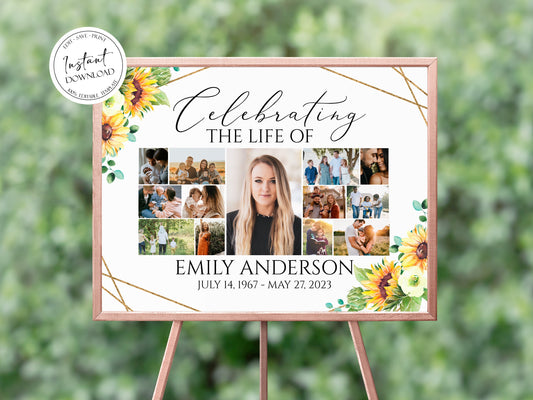 Celebration Of Life Sunflower Photo Collage Funeral Welcome Sign Template Y1