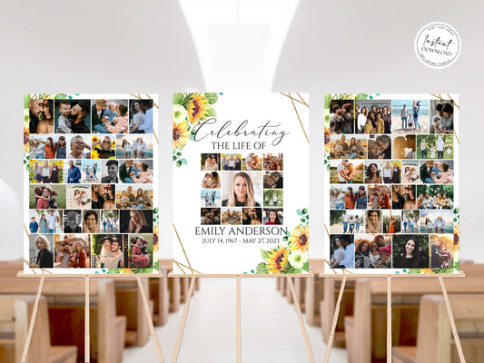 Celebration Of Life Sunflower Photo Collage Funeral Welcome Sign Templates Y1