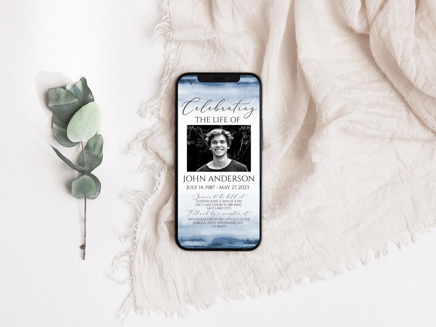Celebration of life Blue Watercolor Digital Funeral Invitation Template B4