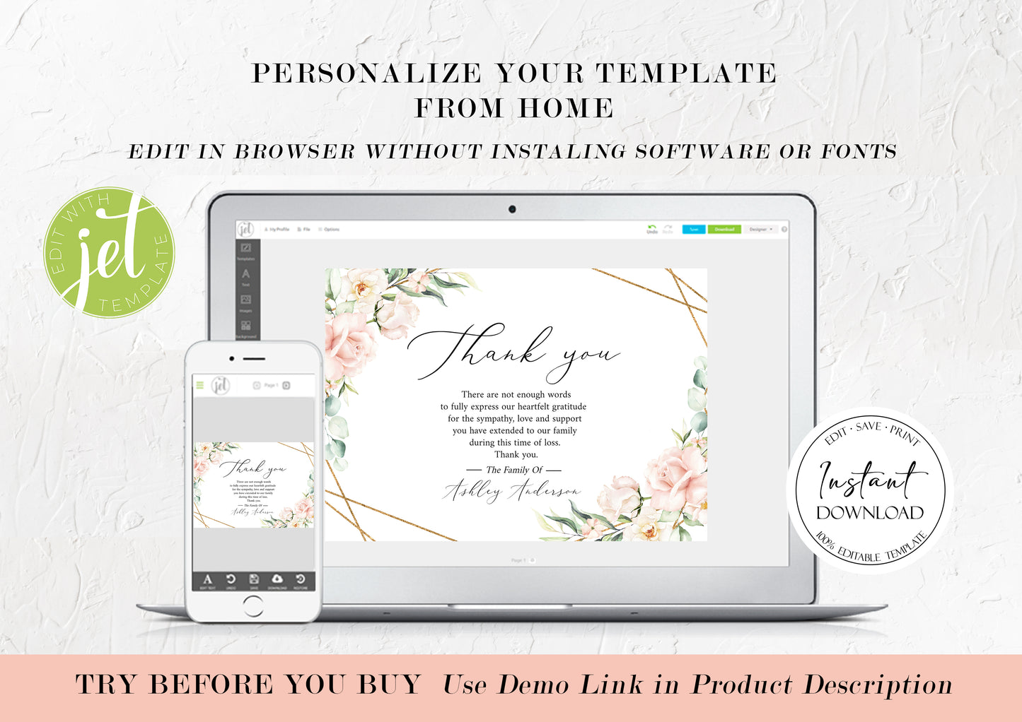 This is a Funeral Thank You Card Template that you can instantly edit, download and print yourself. This does not require a program/fonts to download.