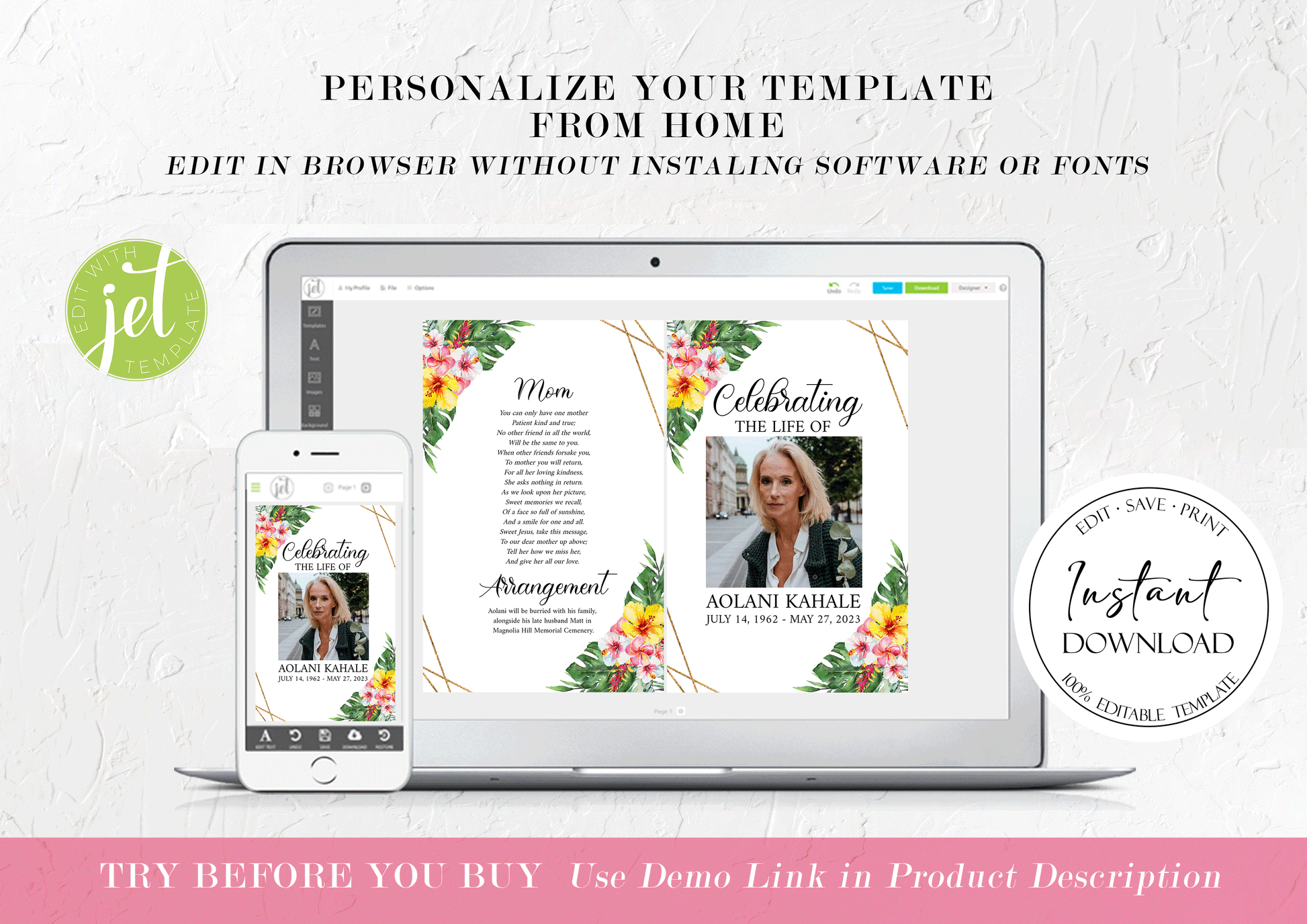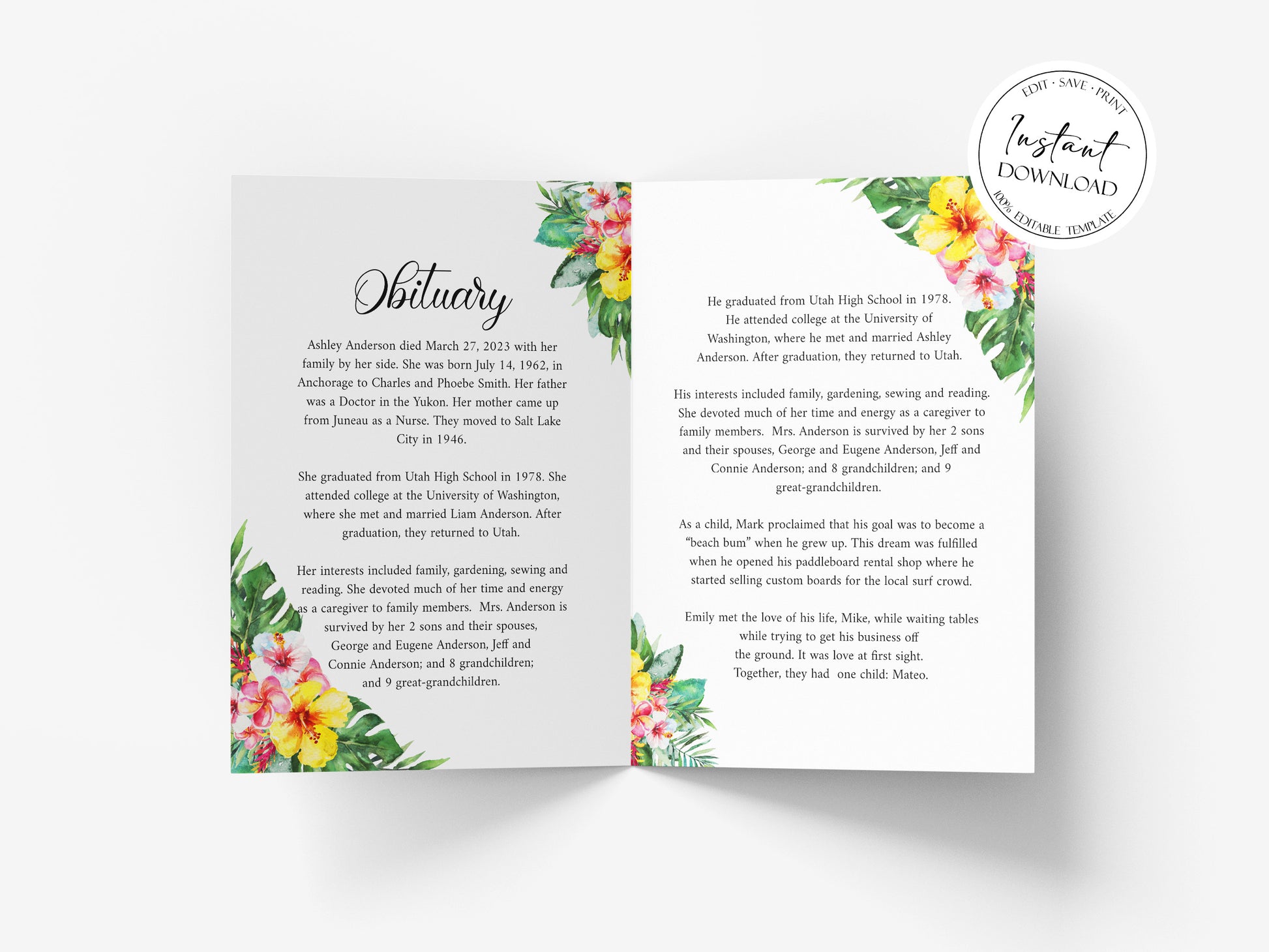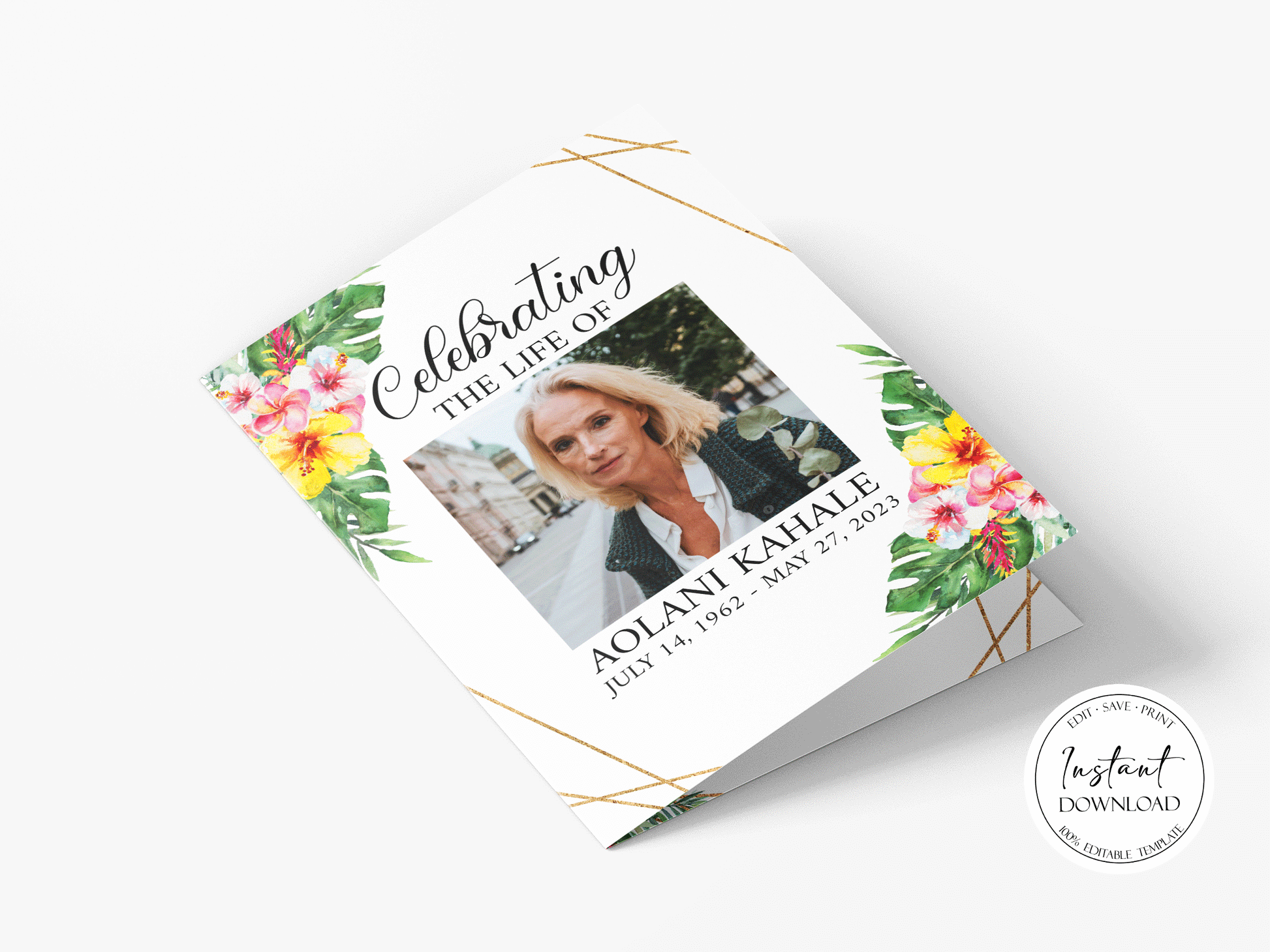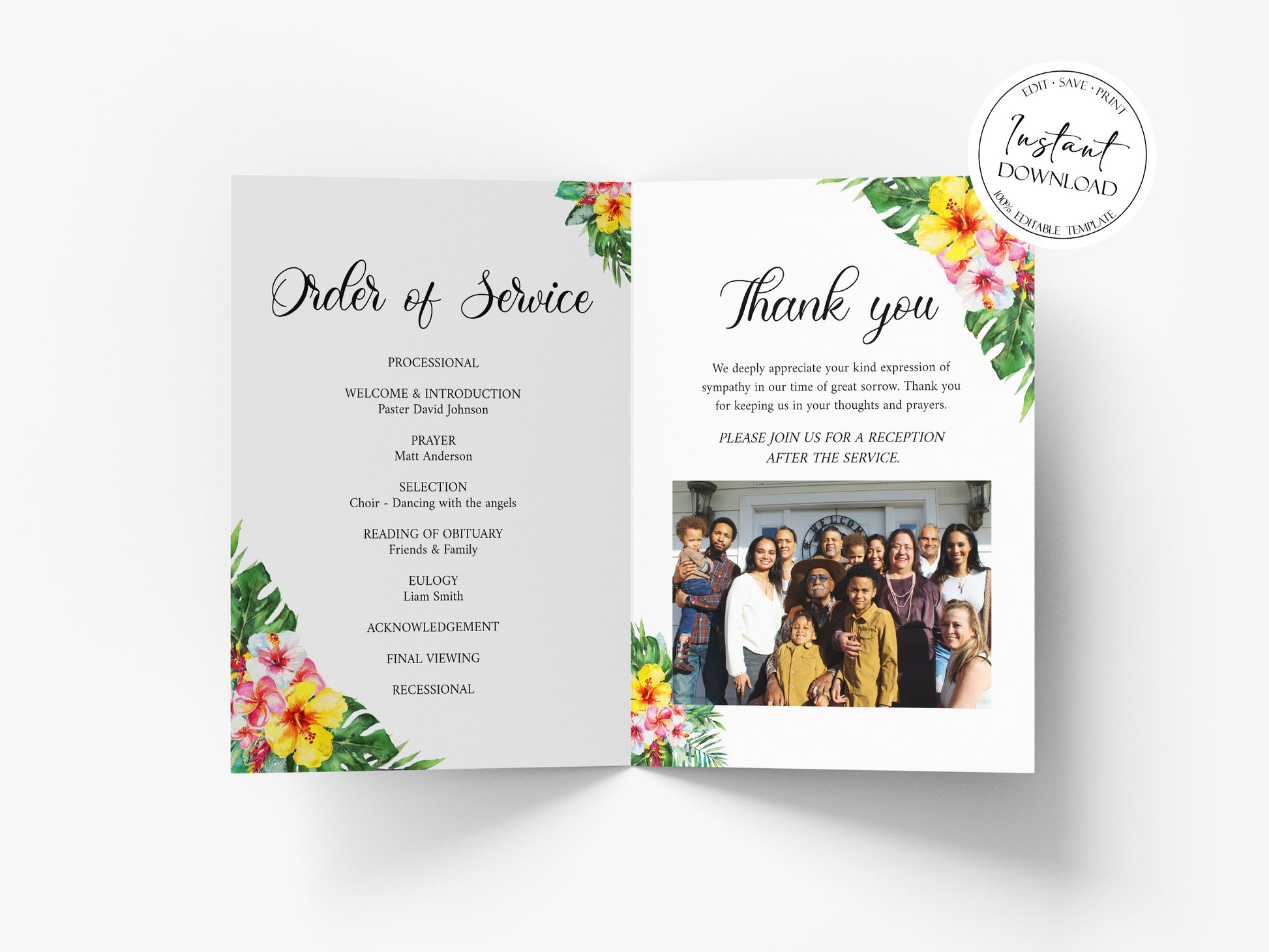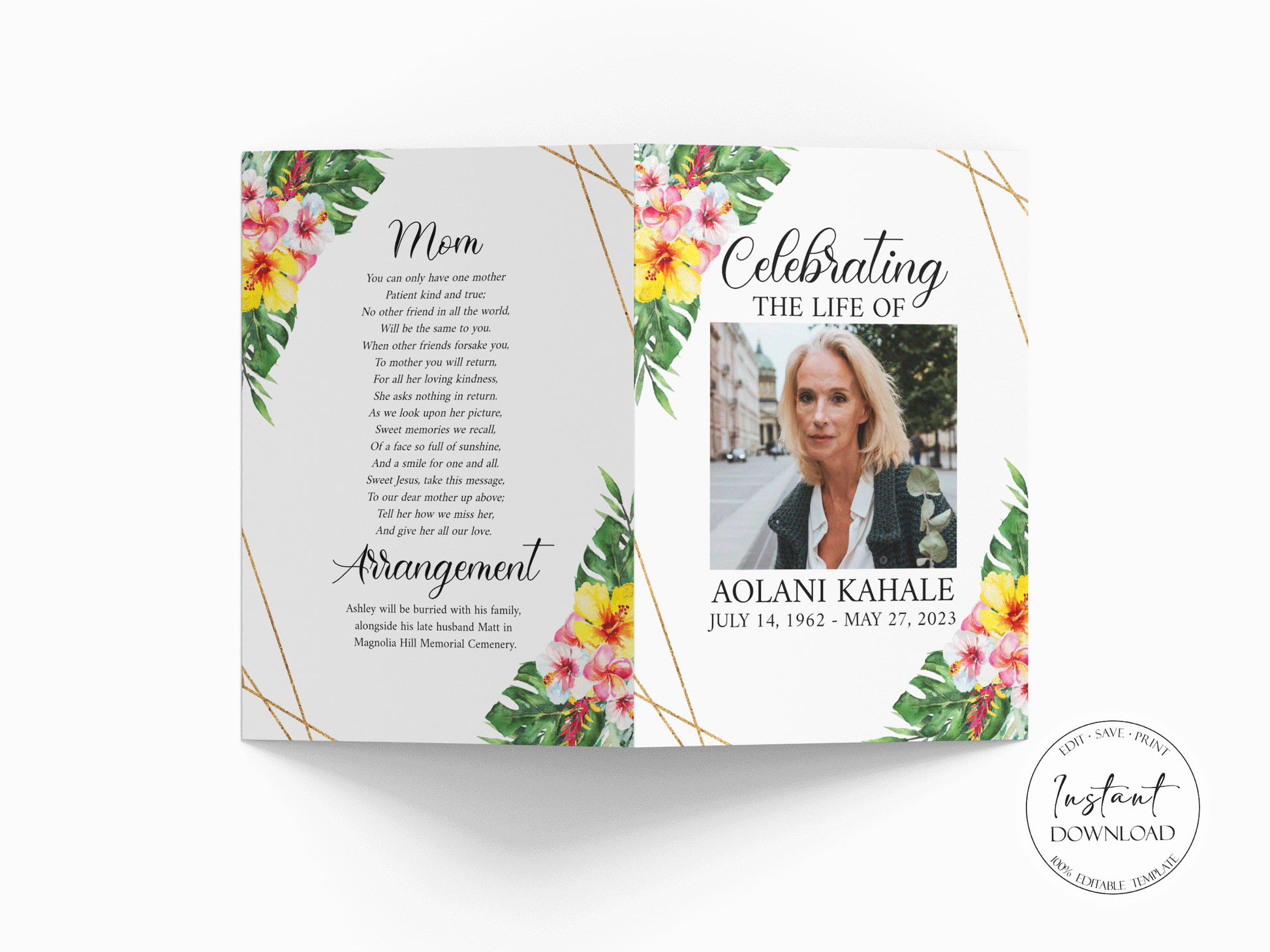 This is a Funeral Program Template that you can instantly edit, download and print yourself. This does not require a program/fonts to download.