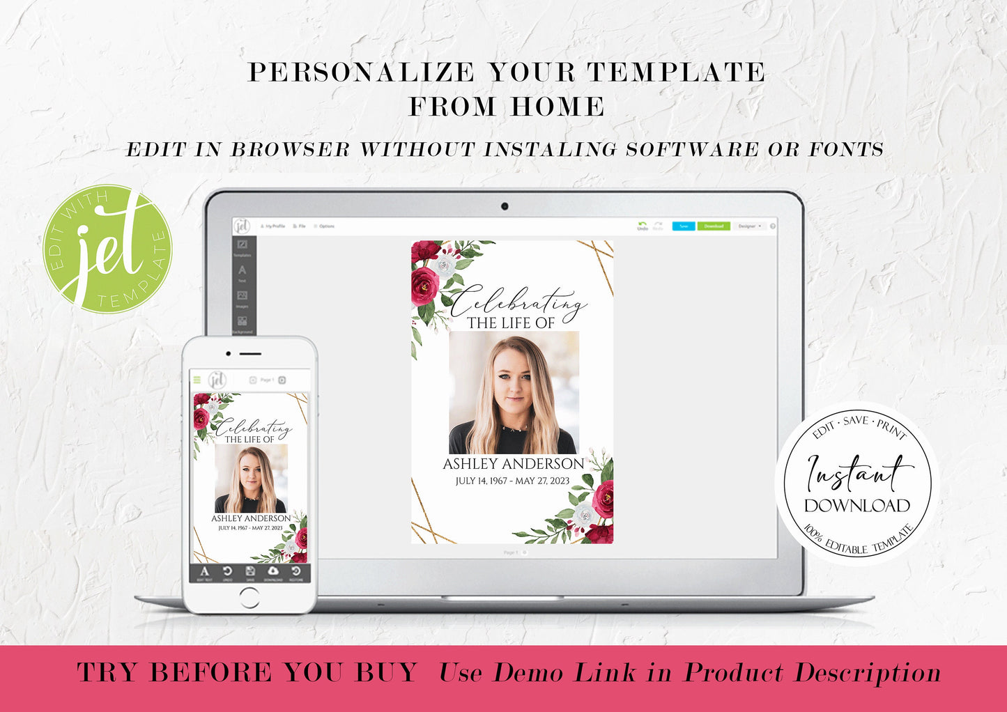 This is a Funeral Welcome Sign template of 53 photos that you can instantly edit, download and print yourself. This does not require a program/fonts to download.