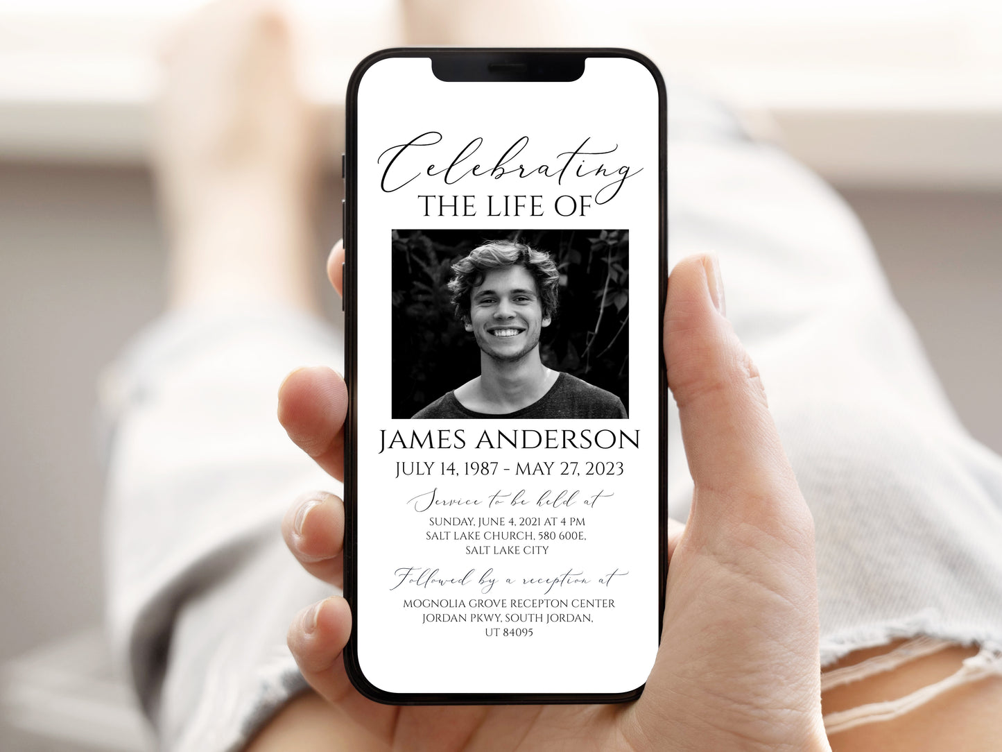 Celebration of life Invitation Simple Elegant Digital Funeral Invitation S1