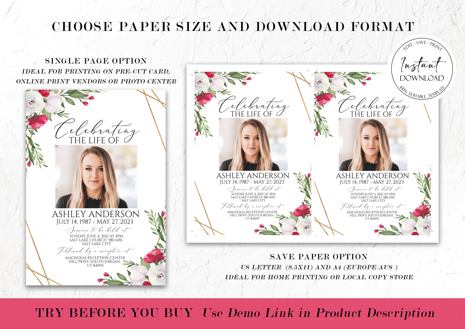 Celebration of life Simple Elegant Funeral Invitation Template S1