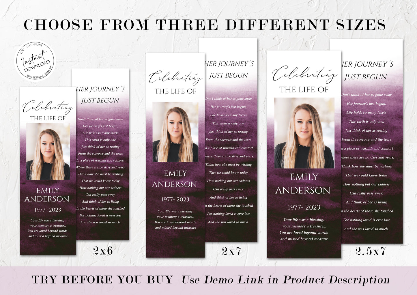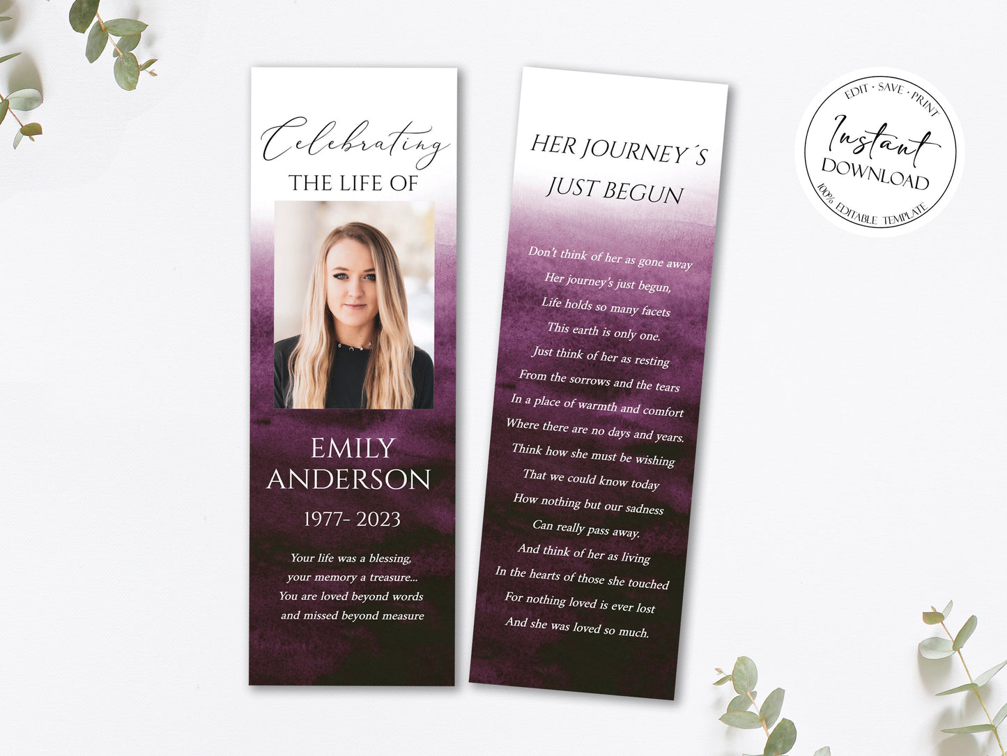 This is a funeral bookmark template that you can instantly edit, download and print yourself. This does not require a program/font to download.
